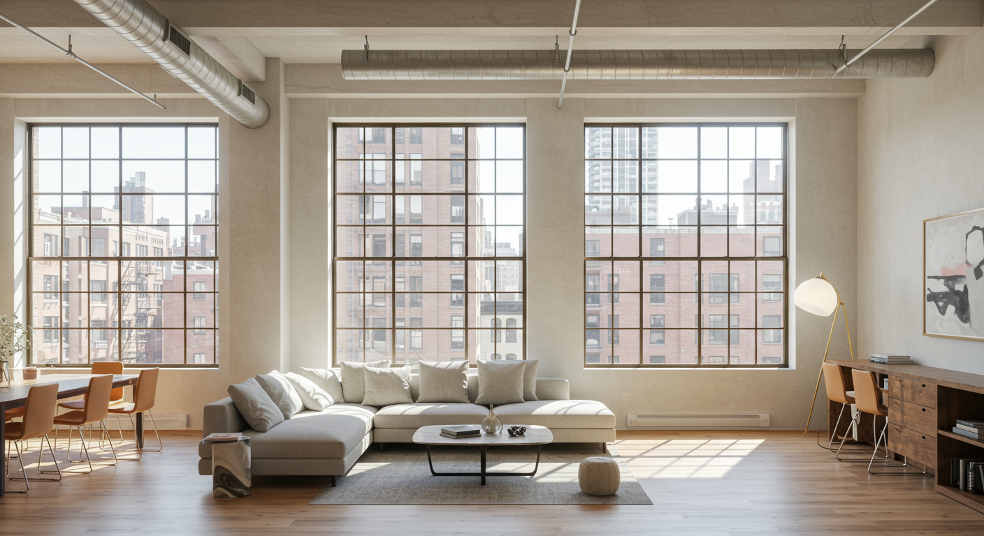 This loft is flooded with natural light from double exposures from both South and East facing massive windows.